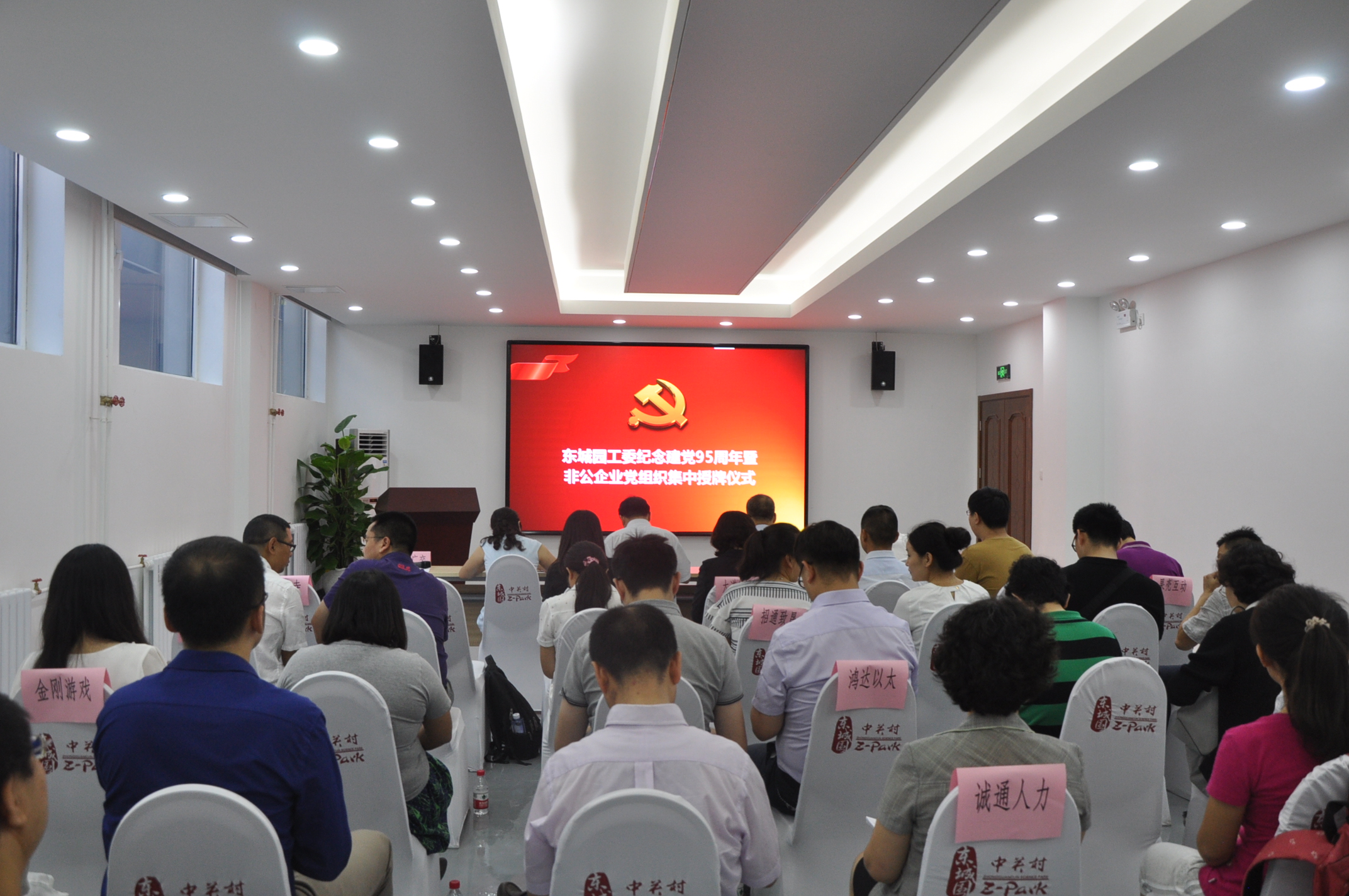 6月24日上午,东城园工委举办纪念建党95周年暨非公企业党组织集中授牌仪式,区委常委汤钦飞、非公企业党支部书记及党员代表共50人出席活动。