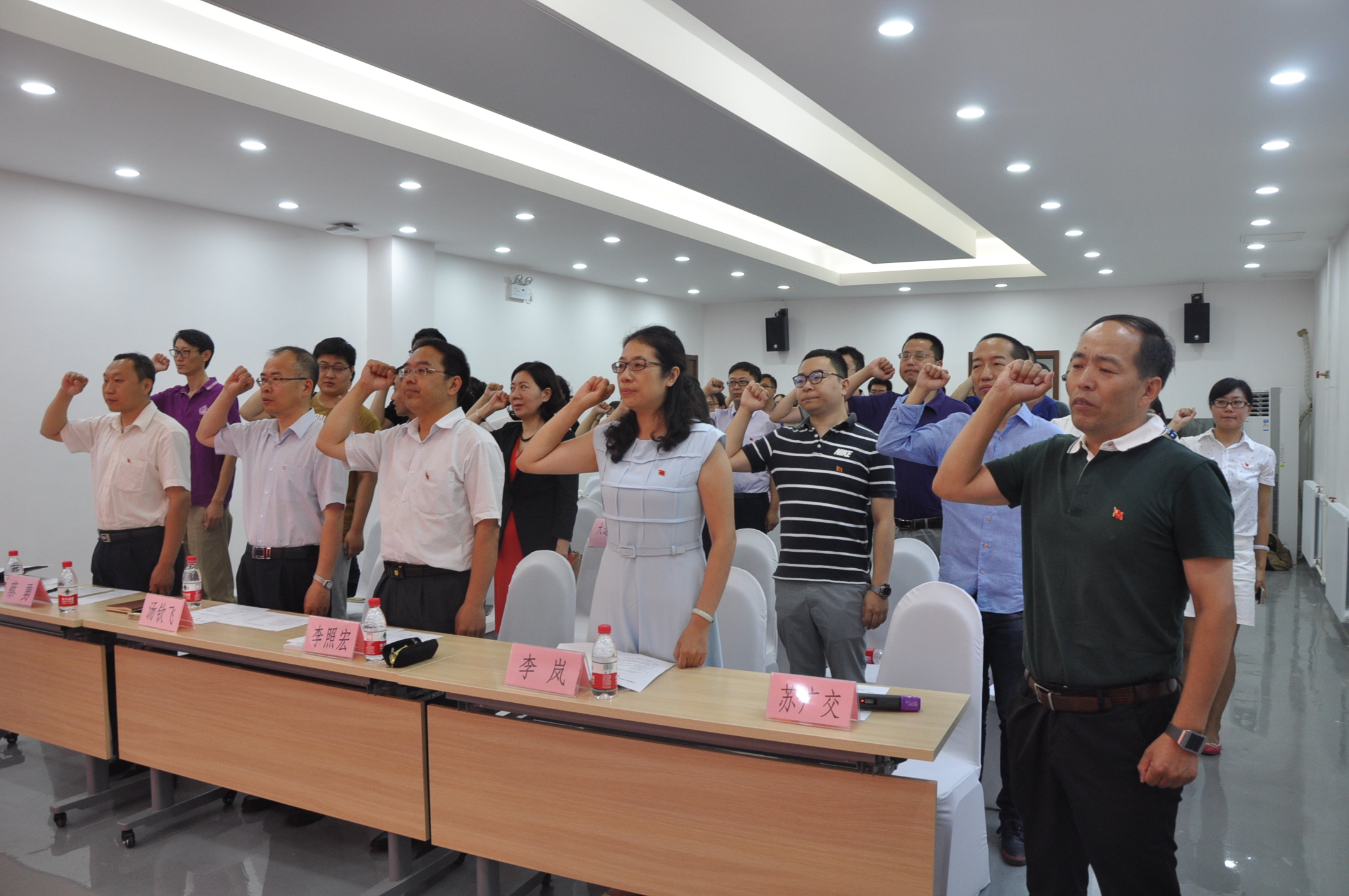 汤钦飞同志向园区10家非公党支部授牌,非公党支部书记代表和非公党员代表进行表态发言,园区工委向全体党员发出在“两学一做”学习教育中,争当“四讲四有”合格党员倡议书。李照宏同志代表东城园工委就进一步统一思想,提高认识,高度重视非公企业党组织建设;充分发挥党支部优势,凝聚企业职工,共同奋斗;强化服务,扩大“两个覆盖,切实推进园区党建工作”讲了三点意见。